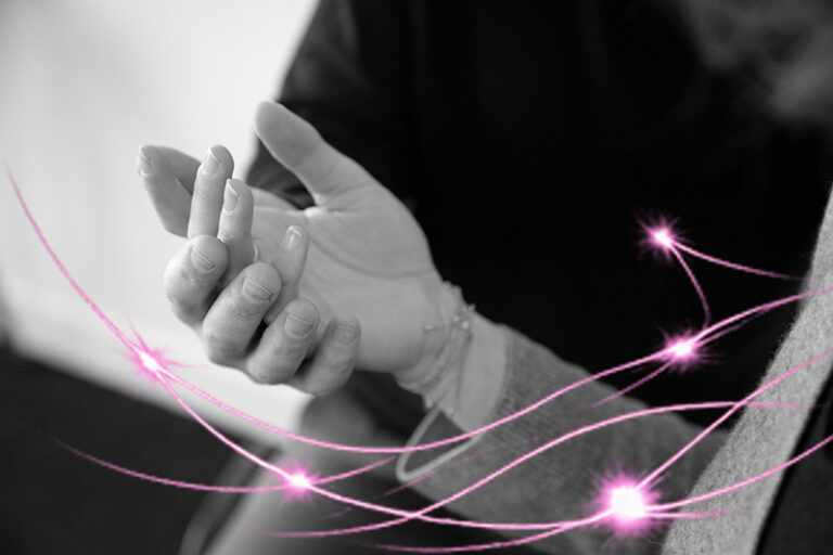 Avec cette patiente, nous prenons le temps de créer une relation circulaire, qui se met en place progressivement au cours des deux premières séances. À la troisième séance, nous définissons un objectif commun : retrouver quelques sensations, car elle se sent trop anesthésiée, comme si elle n’avait plus de corps. L’intention thérapeutique devient alors visible et donne sens à l’action. La relation se densifie.